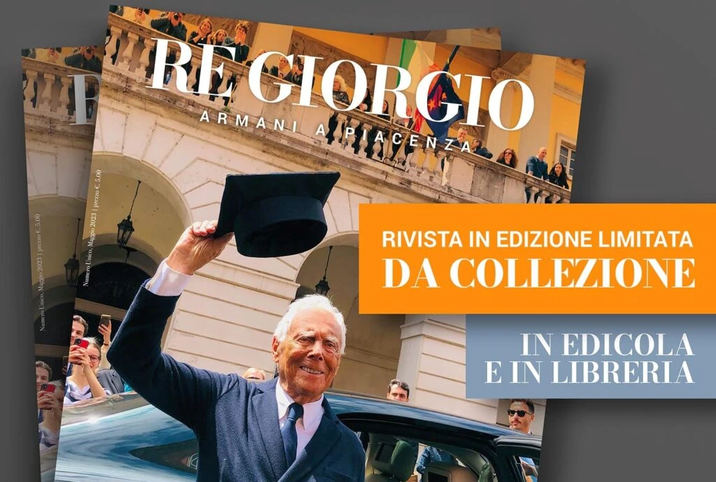 Per ricordare questa giornata davvero unica nella storia di Piacenza e onorare il genio creativo di Giorgio Armani ricordando il suo straordinario percorso nel mondo della moda, Il Mio Giornale.net, Radio Sound, Piacenza Diario, Piacenza24 e PiacenzaOnline hanno realizzato “Re Giorgio” una rivista che mira ad offrire un’esperienza esclusiva ed immersiva a chiunque desideri vivere o rivivere i momenti salienti della cerimonia. Un vero e proprio gioiello editoriale edito da Blacklemon e realizzato con dedizione estetica per essere un degno omaggio al talento senza confini di uno dei più grandi stilisti ed imprenditori del nostro tempo.