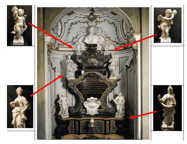 A realizzare queste importanti opere scultoree, nel 1753, fu Don Giovanni Antonio Cybei, scultore carrarese che a metà del ‘700 fu attivo anche per la corte borbonica di Parma. L’originale gruppo scultoreo, posto ad ornamento del Mausoleo del Cardinale Giulio Alberoni, comprendeva le statue allegoriche della Fortezza, della Prudenza, della Fede e della Carità, nonché due angeli reggi fiaccola, lo stemma ed il ritratto del defunto.