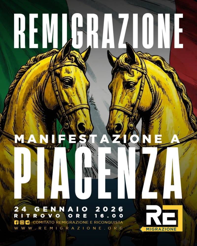 Il Comitato Remigrazione e Riconquista annuncia, dopo il grande successo della manifestazione nazionale del 15 dicembre a Brescia, una nuova mobilitazione di carattere nazionale per la Remigrazione, che si terrà a Piacenza sabato 24 gennaio, alle ore 16.