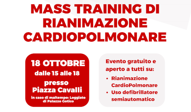 Sabato 18 ottobre, dalle 15.00 alle 18.00, Piazza Cavalli si trasformerà in una grande aula a cielo aperto dove tutti potranno imparare le tecniche base per poter salvare una vita.
