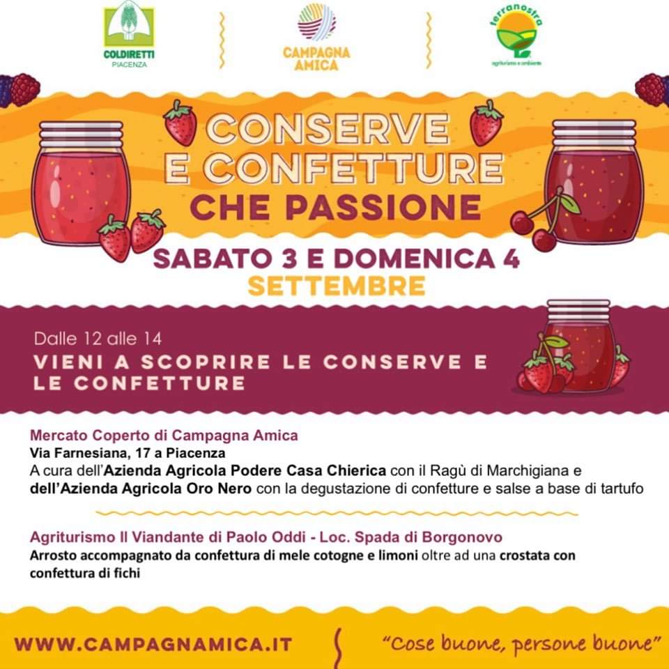 Appuntamenti con i prodotti a km zero anche in provincia. Domenica alle 10.30 Coldiretti sarà protagonista a Borgonovo con il Valtidone Wine Fest dove verrà premiato il miglior ortrugo da una giuria tecnica di sommelier professionisti, mentre sempre domenica, a Carpaneto le aziende di Campagna Amica saranno presenti alla Festa della Coppa.