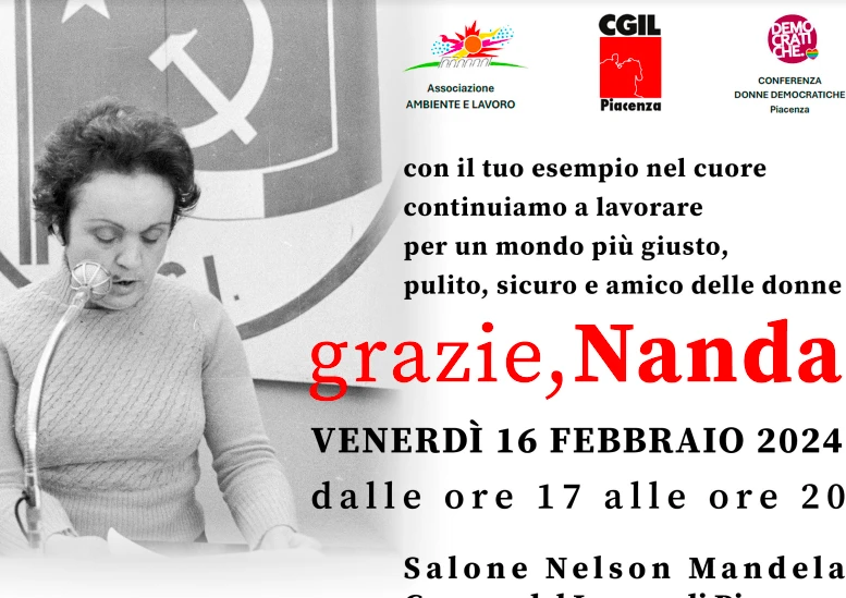 “Con il tuo esempio continuiamo a lavorare per un mondo più giusto, pulito, sicuro e amico delle donne”. A un anno dalla scomparsa, l’Associazione Ambiente e Lavoro, la Camera del Lavoro – Cgil di Piacenza e la Conferenza delle donne Democratiche di Piacenza ricorderanno, venerdì 16 febbraio dalle ore 17:00, la figura dell’ex deputata e attivista Nanda Montanari, scomparsa a 88 anni nel febbraio 2023.