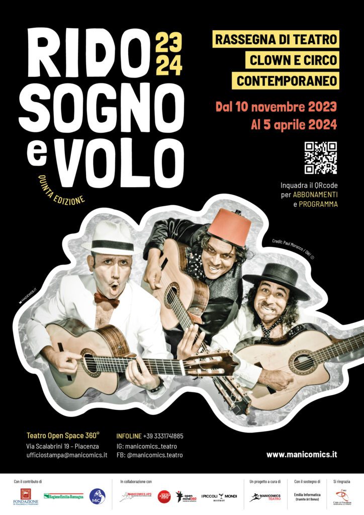 Rido Sogno e Volo 2023 presentata la V° edizione della rassegna di Clown, teatro e circo contempo che si terrà a Piacenza presso il teatro Manicomics di via Scalabrini 19 dal 10 novembre 2023 al 5 aprile 2024. La Rassegna invernale quest’anno più che mai si dedica al teatro comico, al clown ed alla musica, dividendosi equamente tra teatro serale, il venerdì e teatro per famiglie, la domenica pomeriggio.