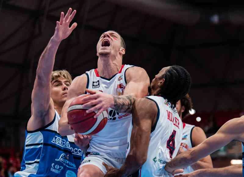 Botta e risposta da oltre l’arco tra Miller e Tomassini, replicato anche nel cuore dell’area. Quattro punti consecutivi di Gallo rimettono l’Assigeco sotto di sei lunghezze, ma Grande dall’altra parte infila la quarta tripla della sua serata (68-59 al 34’). Ancora Miller da tre, che pochi minuti più tardi