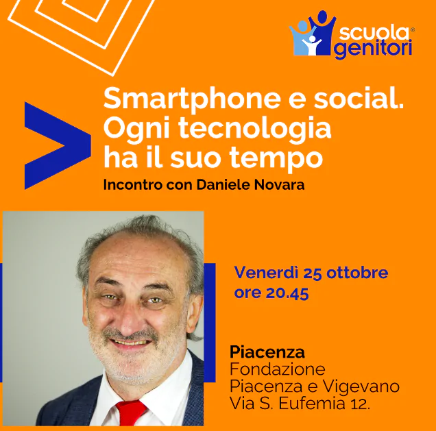 Riparte il progetto Scuola Genitori a Piacenza il 25 ottobre con la serata intitolata “Smartphone e social media. Ogni tecnologia ha il suo tempo“.