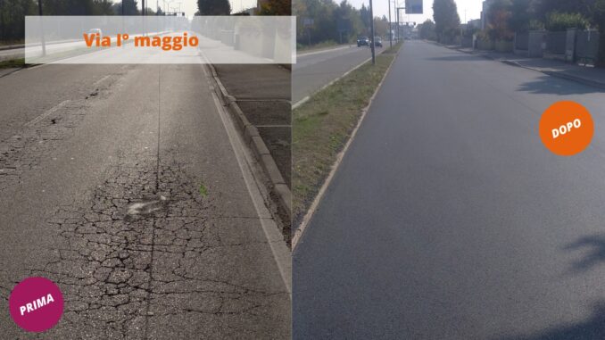 Dopo un intervento svolto principalmente nelle ore notturne per limitare il più possibile i disagi al traffico veicolare, si sono conclusi nei giorni scorsi i lavori di riqualificazione della pavimentazione stradale di via I Maggio, nel tratto compreso tra la rotatoria di intersezione con via Emilia Pavese e la rotatoria di intersezione con via Einaudi. L’intervento ha riguardato le due corsie del lato ovest, con senso di marcia nella direzione che va da via Emilia Pavese a via Einaudi, per una lunghezza di circa 520 metri e una superficie complessiva di 3900 metri quadri.