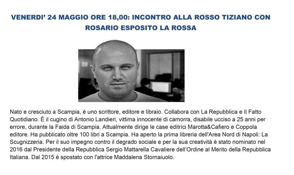Rosario Esposito La Rossa, il 24 maggio allo Spazio Rosso Tiziano.
