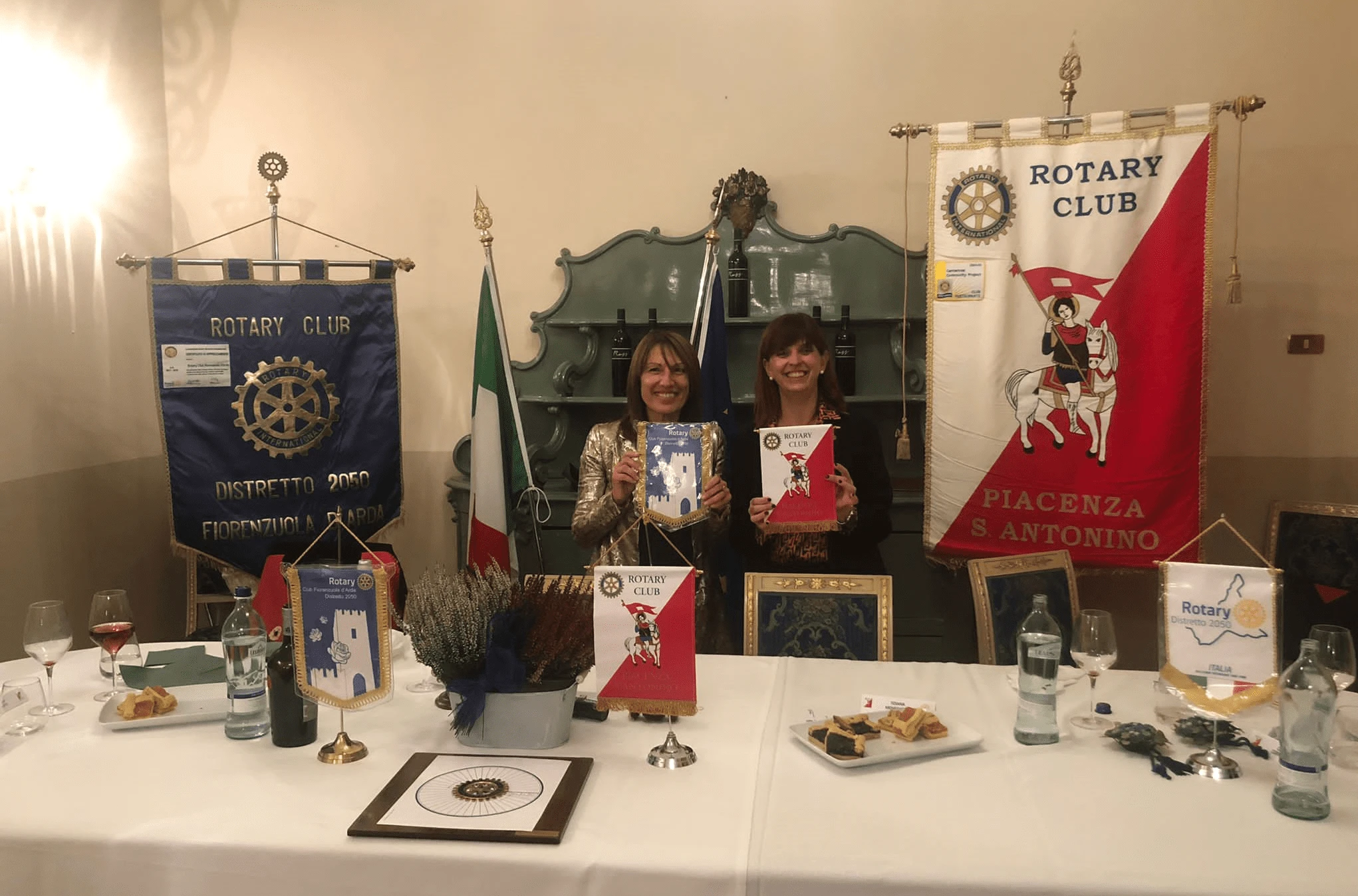Spazio quindi alla bella conviviale , che ha visto seduti al tavolo presidenziale Tiziana Meneghelli e consorte , Monica Patroni , Maria Grazie Sabato e Corrado Celli , rispettivamente segretario e tesoriere del Rotary Club S.Antonino , e Giudo Bosi , presidente del Rotaract Fiorenzuola d’Arda .