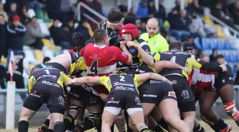 Gli avanti piacentini faticano più del solito ad imporsi subendo la malizia degli avversari che fanno costantemente ruotare la mischia ad ogni introduzione, non venendo adeguatemene sanzionati dall’arbitro che appare in più di una occasione piuttosto confuso sulle decisioni da prendere.