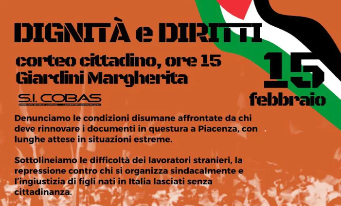Il sindacato Si Cobas comunica che SABATO 15 FEBBRAIO, dalle ore 15:00 ai Giardini Margherita, si terrà “una importante manifestazione promossa dallo stesso e dalle realtà solidali cittadine”.