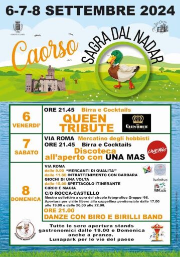 Sagra Dal Nadar 2024 a Caorso dal 6 all’8 settembre. Domenica i Mercanti di Qualità propongono il noto e apprezzatissimo 100% Made in Italy. Tutto pronto per una tre giorni di grande divertimento con anatra arrosto, musica, shopping e luna park per le vie del paese. Presenti stand gastronomici, dalle ore 19 e la domenica anche a pranzo.