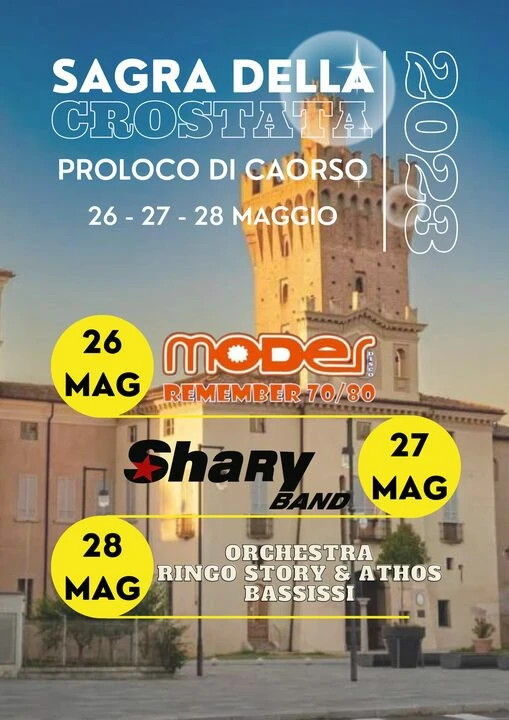 Spazio anche alla musica: venerdì con la musica anni 70 e 80, sabato con la dance e domenica con il liscio. L’evento è proposto dalla locale Pro Loco e dal Comune di Caorso
