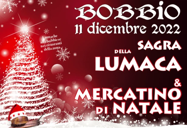 Sagra della Lumaca a Bobbio domenica 11 dicembre 2022. La giornata di festa si apre alle ore 8.30 con il Mercatino in Piazza Duomo dove si potranno trovare tante idee natalizie. L’inaugurazione ufficiale della sagra invece è prevista alle ore 10 30