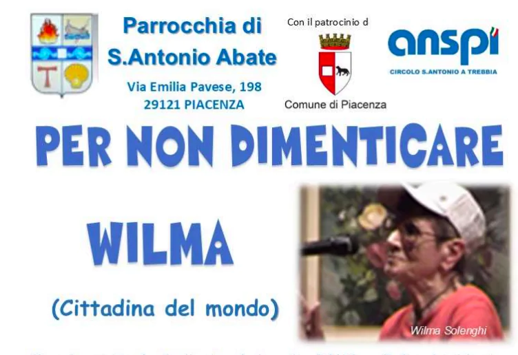 Giovedì 15 gennaio si comincia alle 9,00 per Turtlitt e banco e alle 18,30 la benedizione del pane. Alle 21,00 presso il salone parrocchiale Uccio Genovese presenta e dirige “Per non dimenticare Wilma” serata musicale tributo all’indimenticabile e indimenticata Wilma Solenghi musicista, cantante, pittrice e orgoglio della comunità di S. Antonio.
