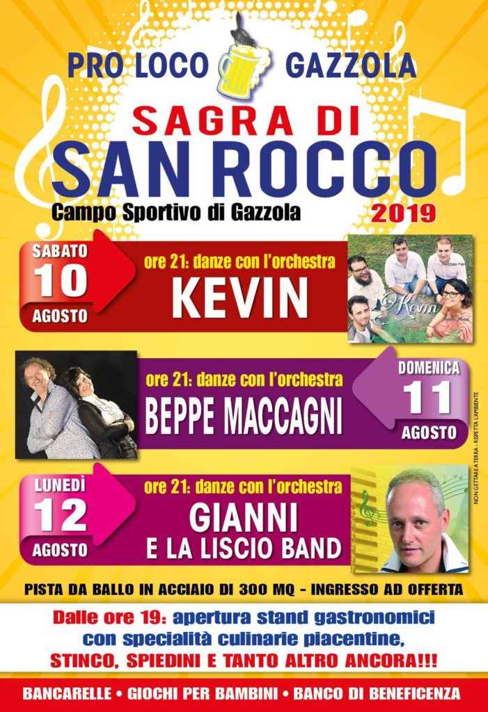 Sagra di San Rocco 2019, dal 10 al 12 agosto. Un’edizione piena di divertimento, ballo liscio e ottimo cibo a Gazzola al Campo Sportivo.