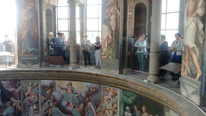 Come noto, grazie a un antico camminamento recuperato e messo in sicurezza dalla Banca, è possibile salire alla stessa altezza degli affreschi della Cupola maggiore di Santa Maria di Campagna, realizzati dal Pordenone tra il 1530 e il 1535, e godere, dalla galleria circolare, di una vista panoramica a 360 gradi sulla città. Il percorso della Salita si completa con la visita alle altre opere realizzate nella Basilica dall’artista friulano: le Cappelle di Santa Caterina e della Natività e il Sant’Agostino, anch’esso restaurato dalla Banca.