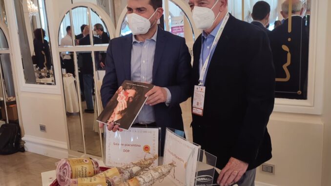 Nei giorni scorsi presentato il progetto presso il prestigioso “Grand Hotel Rimini” l’importante progetto dell’Assessorato all’Agricoltura ella Regione Emilia Romagna. Nel salone principale dell’Hotel tra le 16 postazioni gestite dai consorzi di tutela della regione spiccava quella del Consorzio Tutela Salumi DOP Piacentini dove erano presentate e poste in degustazione le tre eccellenze piacentine: “Coppa Piacentina, Salame Piacentino, Pancetta Piacentina”.