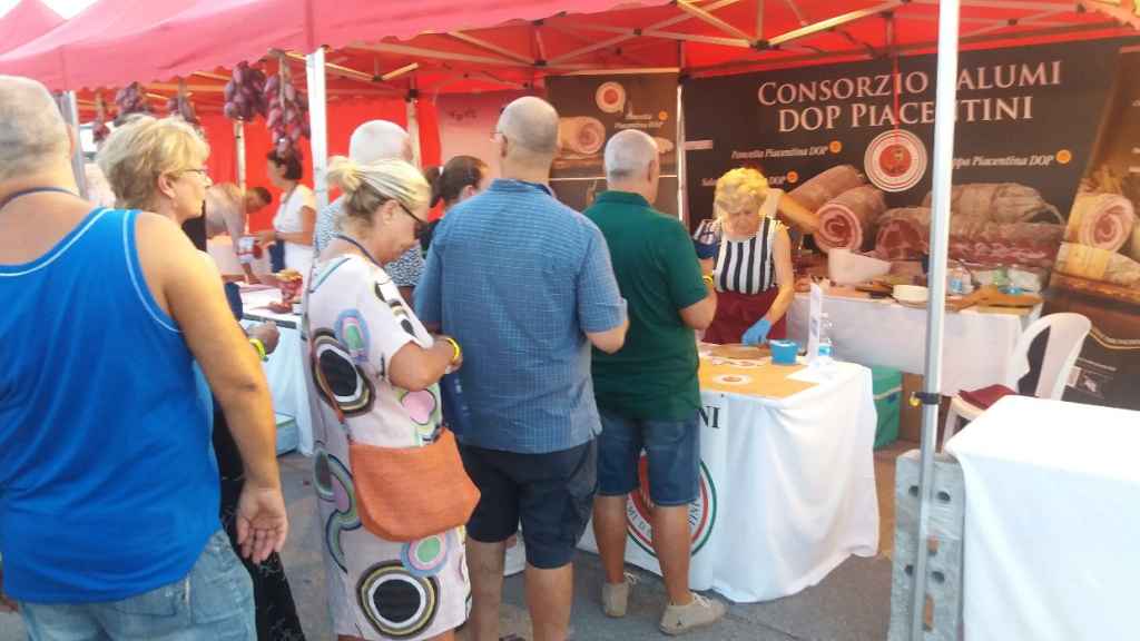 Tra gli invitati della serata il Consorzio Salumi DOP Piacentini che ha portato in degustazione il tris dei nostri salumi in abbinamento alla Piadina. E’ stato un vero assalto allo stand piacentino, sicuramente il più visitato dai tantissimi villeggianti che hanno partecipato alla serata. Lo staf del nostro consorzio, capitanato dall’instancabile Lorella Ferrari, è stato messo veramente a dura prova, alla fine della serata la Berkel fumava nel vero senso della parola, e non solo l’affettatrice. Oltre cinquecento le degustazioni approntate e servite, una vero trionfo per i nostri salumi.