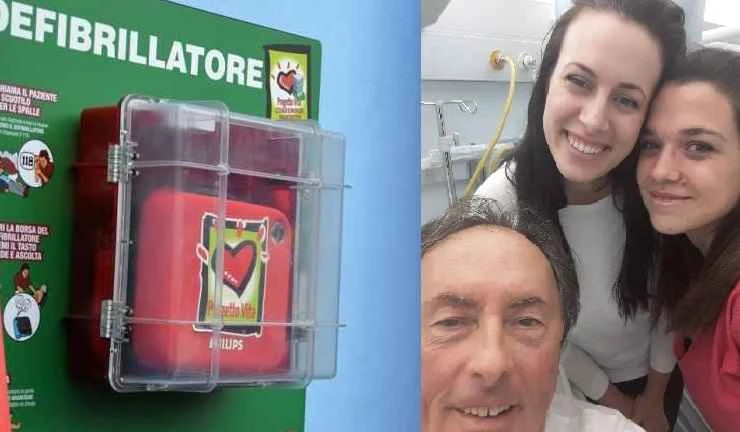 Nel frattempo alcuni presenti avevano portato sul posto il defibrillatore in dotazione al locale e avevano iniziato ad applicare lo strumento salvavita.