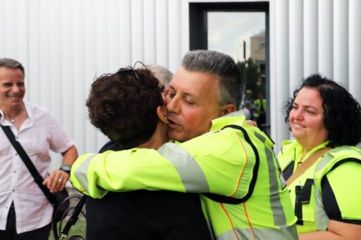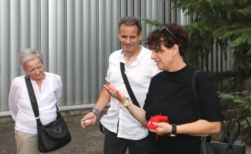 È sempre Mara che ha scritto all’Azienda per chiedere di poter incontrare, insieme al compagno, tutti i professionisti e i volontari che hanno partecipato al soccorso. Così, nella sede 118 di via Anguissola, i due hanno potuto abbracciare gli infermieri, medici e autisti soccorritori che hanno salvato la vita ad Angelo Paolo. Mara ha consegnato un simbolico braccialetto rosso, fatto a mano da lei, con un cuore.