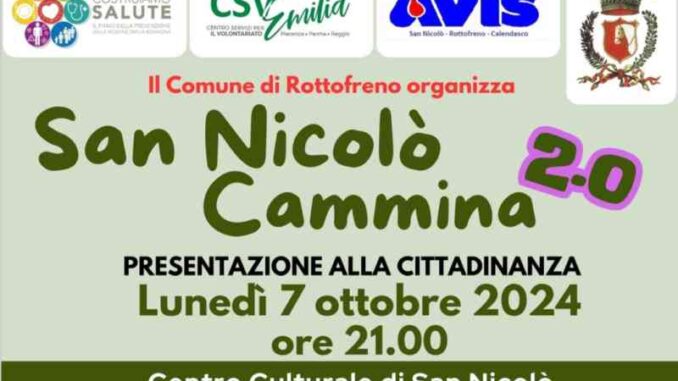 San Nicolò Cammina 2.0, presentazione alla cittadinanza il 7 ottobre alle ore 21. Le camminate partiranno dal Centro culturale martedì 8 ottobre con ritrovo alle 20.20 e partenza alle 20.30.