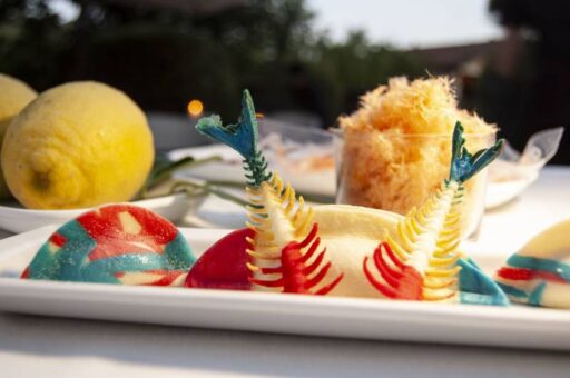 Il menù inusuale, equilibrato e creativo ha stupito i commensali già dalla prima portata. La cena è iniziata con la Salade mille saveurs, con le erbe aromatiche di Biofilia, ed è proseguito con il Sanculotto ai profumi di Provenza, l’Ombrina alla Colbert per terminare con un delizioso Baba al Rhum con crème diplomatique e profumo d’arancia.