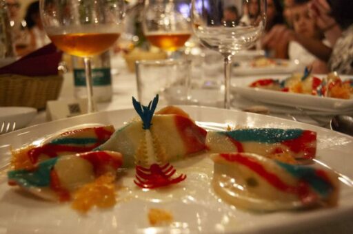 Un successo annunciato e confermato dai partecipanti che hanno apprezzato l’ambientazione, l’animazione e i piatti creati appositamente per l’occasione. Un mix di creatività, originilità, sapori e qualità delle materie prime hanno generato il “Sanculotto” un tortello che ricorda la feluca di Napoleone e che si fa notare, oltre che per il gusto raffinato, anche per i colori della bandiera francese. Abbinamento perfetto con il salmone Upstream, realizzato con criteri decisamente controcorrente, affidati alla passione alla creatività di Claudio Cerati e oggi diventato una realtà d’eccellenza.