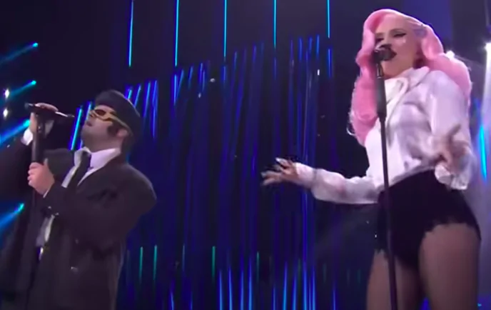 Ditonellapiaga con TonyPitony – The Lady Is a Tramp. Bravi, cantano bene e fanno spettacolo. Voto 9. Dai social: sto amando tutto stasera, ma basta Siani.
