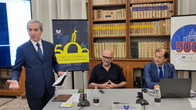 Un progetto per valorizzare ancora di più la Basilica di Santa Maria di Campagna attraverso la luce. Per il momento ancora solo un’idea da verificare e modulare, presentata questa sera nella Biblioteca del Convento da Davide Groppi e Carlo Ponzini, nel corso di un incontro rientrante nelle Celebrazioni dei 500 anni del santuario, a cura della Comunità francescana e della Banca di Piacenza.
