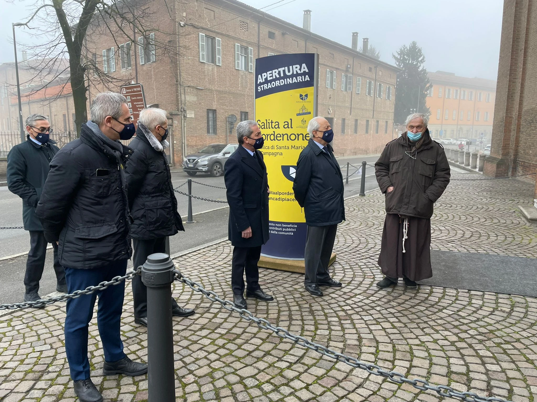 In sagrestia, si diceva, dove era una volta il cimitero dei frati. E ieri, una delegazione della Direzione della Banca di Piacenza (con il direttore generale Antoniazzi, il condirettore Coppelli e il vicedirettore Boselli), accompagnata da fra’ Franco, vi ha fatto un sopralluogo, accedendo da una scala di una stanza attigua. E nonostante gli apparati tecnologici che vi sono stati sistemati nel secolo scorso, è parso confermato (e maggiormente dettagliato) quanto sempre si è detto e saputo.