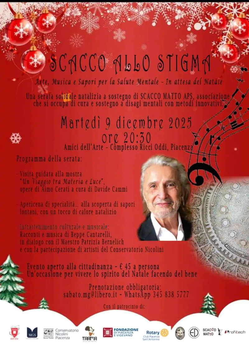 Scacco allo stigma, serata benefica il 9 dicembre alle ore 20.30 presso la sede de gli “Amici dell’Arte” (complesso Ricci Oddi in Via San Siro a Piacenza).