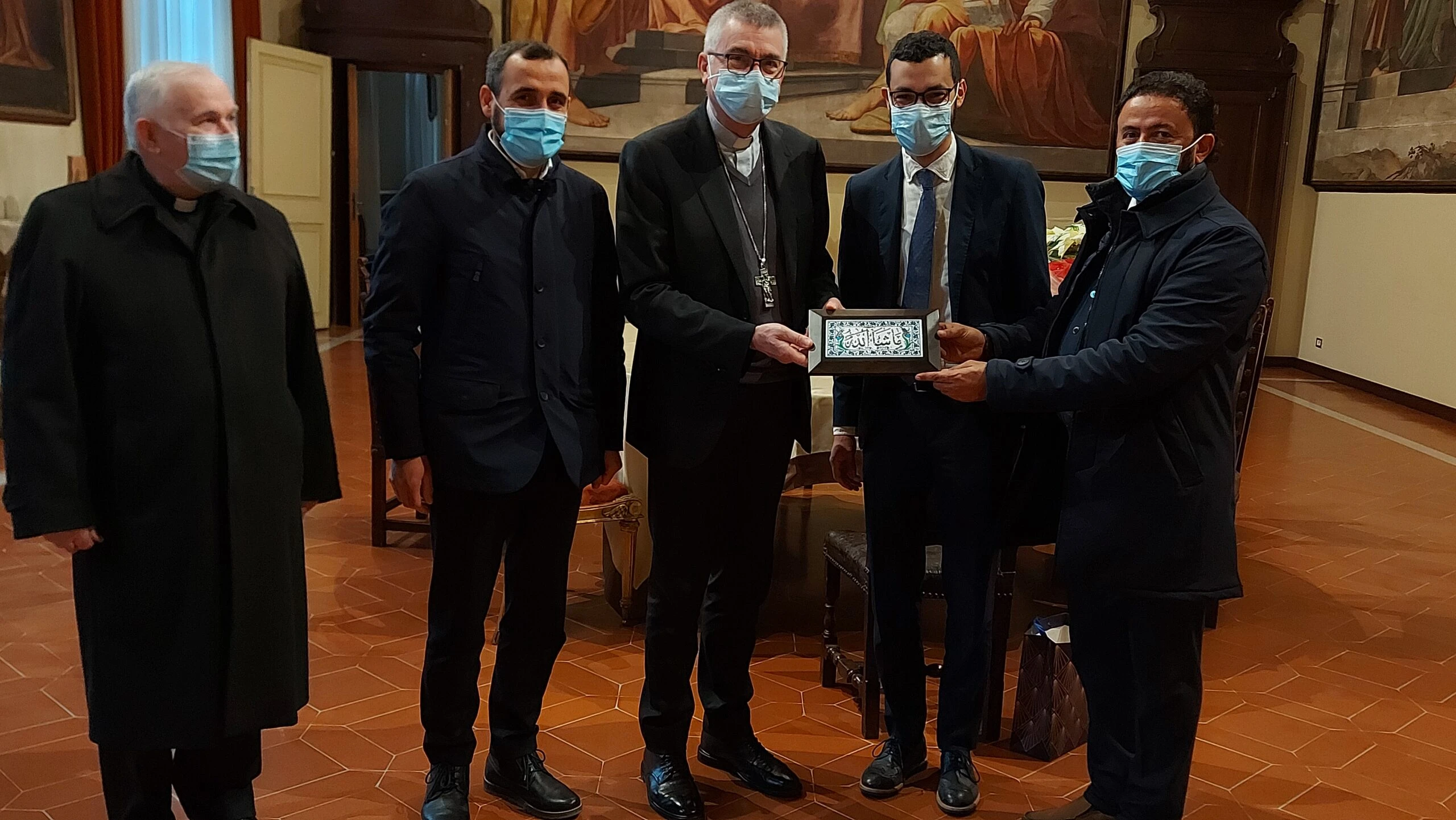 Scambio di auguri a pochi giorni dal Natale tra il vescovo mons. Adriano Cevolotto e i rappresentanti della Comunità islamica di via Caorsana a Piacenza.