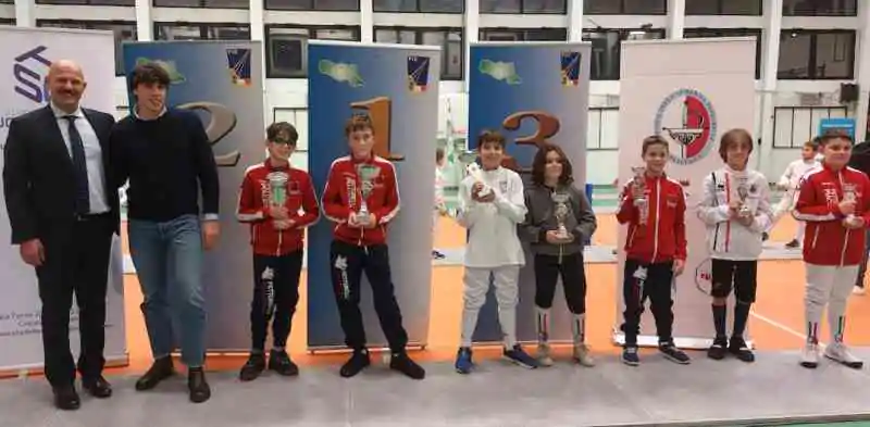 Tra i bambini il podio se lo è aggiudicato Martino Barenghi seguito da Andrea Bosi, entrambi del Pettorelli. Terzi a pari merito Achille Romanini (Pettorelli) e Andrei Raul (Milano scherma). Quinto e settimo posto ancora del Pettorelli con Andrea Rizzo e Fabio Gandelli, mentre la sesta piazza è andata a Tommaso Enrico (Piccolo Teatro di Milano). Tra le bambine, il primo posto se lo è aggiudicato Claire Audano (Piccolo Teeatro), mentre argento e bronzo sono dati rispettivamente alle biancorosse Amelia Secondi e Linda Terzoni.