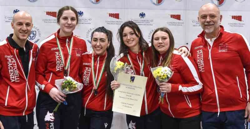 Il Pettorelli fa il bis e nella giornata finale del Campionato italiano di scherma a squadre porta sul podio il team femminile della sciabola che conquista un bronzo e la promozione in B1, mentre la squadra maschile si conferma in Serie B1. Una giornata che ha fatto registrare il successo della manifestazione e l’esordio a Piacenza Expo della scherma in carrozzina e per non vedenti: in quest’ultima disciplina buon piazzamento delle ragazze al quinto e settimo posto in una gara ufficiale. Una giornata che ha entusiasmato Alessandro Bossalini, presidente del Pettorelli e del comitato organizzatore.