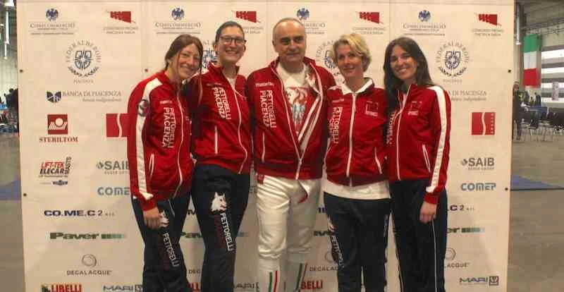 Apertura dei Campionati italiani di scherma a squadre a due facce per le compagini piacentine. La squadra femminile si conferma in B2, quella maschile retrocede in C. I Tricolori sono per le Serie A2, B1, B2, C, C1. La giornata per i due team biancorossi di fioretto la riassume Alesandro Bossalini, presidente del Pettorelli, che ha organizzato la grande kermesse che si svolge a Piacenza Expo fino a domenica.