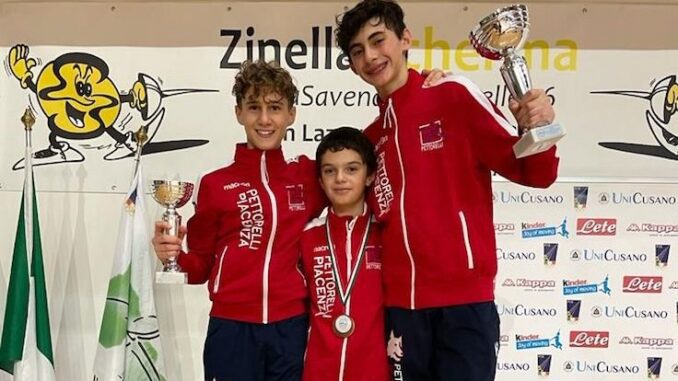 Il Pettorelli si impone a Bologna. Sono piacentine le due prime posizioni del podio della prima prova regionale del Gran premio giovanissimi, prova di qualificazione ai campionati italiani Under 14, che si è svolto sabato e domenica a Bologna. La piazza d’oro della categoria Allievi è andata a Andrea Bossalini che, in un assalto “fratricida”, ha superato di una stoccata (15-14) il compagno del Pettorelli, Valentino Monaco. Nella prova regionale, si segnala un altro atleta biancorosso approdato alla finale nei primi otto, Gabriele Guglielmetti (categoria Maschietti), alla sua prima gara in pedana.
