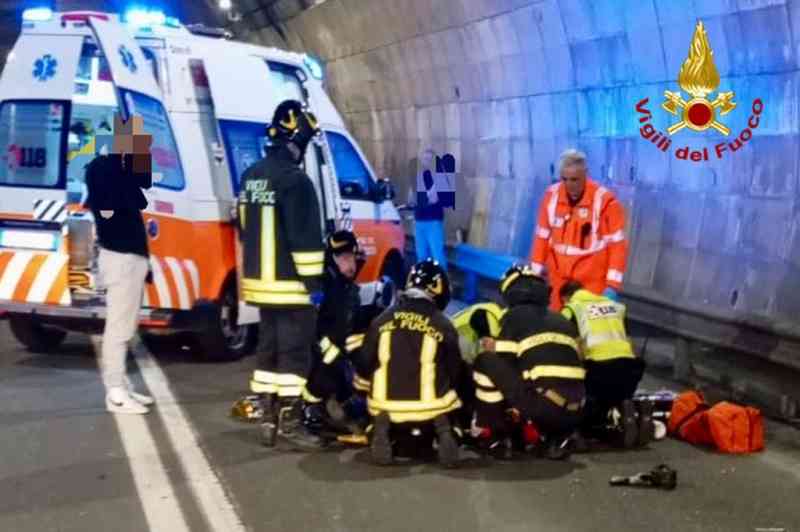 Schianto contro un’auto in galleria a Bobbio: la moto prende fuoco, grave il centauro – FOTO
