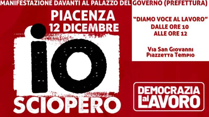 Sarà venerdì 12 dicembre lo sciopero generale proclamato dalla CGIL per chiedere una manovra economica più giusta per il Paese; la mobilitazione territoriale si concentrerà in un presidio sotto la Prefettura, in via San Giovanni, dalle ore 10 alle ore 12, un momento pubblico nel quale “prenderà la parola il lavoro”.