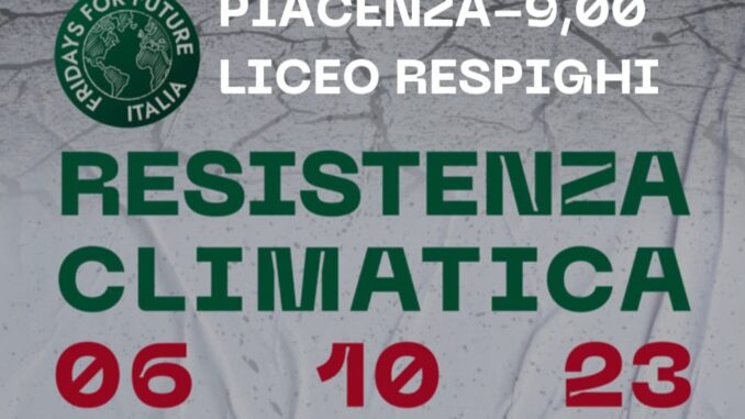 Sciopero per il Clima Venerdì 6 ottobre, Piacenza si unirà a tutte le principali città d’Italia. Manifestazione organizzata dal gruppo dei ragazzi di Fridays For Future Piacenza. Il ritrovo sarà alle ore 8.30 presso il Liceo Respighi e seguirà un corteo che sfilerà lungo alcuni dei principali luoghi d’interesse del centro città .