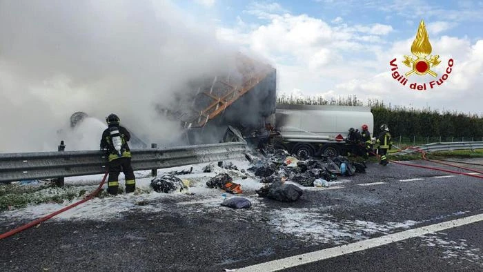 Il tir di Bazzini, che trasportava rifiuti, ha preso fuoco, e il 56enne è morto; illeso invece l’uomo al volante dell’altro mezzo pesante, un’autocisterna contenente, da una prima stima, 15mila litri di benzina e 2mila di gasolio. Per il liquido infiammabile, dal comando di Milano, è partita una squadra dei Vigili del fuoco per seguire le operazioni di travaso in un’altra autocisterna.