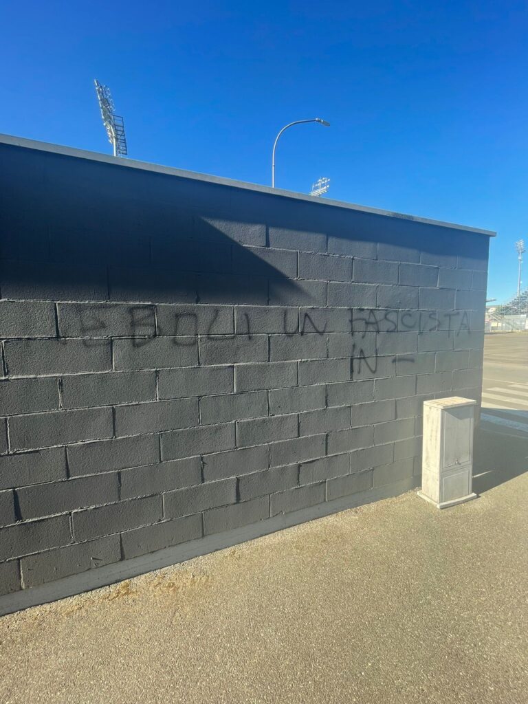 “Reboli, un fascista in meno”. La scritta è comparsa durante la notte appena trascorsa, imbrattando la parete di un’abitazione privata in via Sbolli, accanto a un negozio di abbigliamento. Non solo: lo stesso slogan è comparso anche sui muri di altre zone della città. Una tempistica verosimilmente non casuale: domani sera, infatti, si terrà allo stadio Garilli la Festa della Curva Nord durante la quale sarà inaugurato il tanto discusso murale dedicato alla memoria di Davide e Marco Reboli, i due fratelli simbolo del tifo biancorosso. Un murale creato su una parete dell’impianto sportivo di via Gorra, finito al centro di accese polemiche che a quanto pare hanno oltrepassato il dibattito politico.