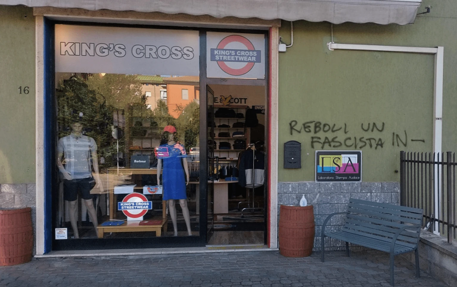 Ma soprattutto: “Ma veramente l’hanno fatta? Disgustoso”, commenta una signora che nulla ha a che vedere con la politica, mentre passa di fronte allo slogan tracciato con spray nero.