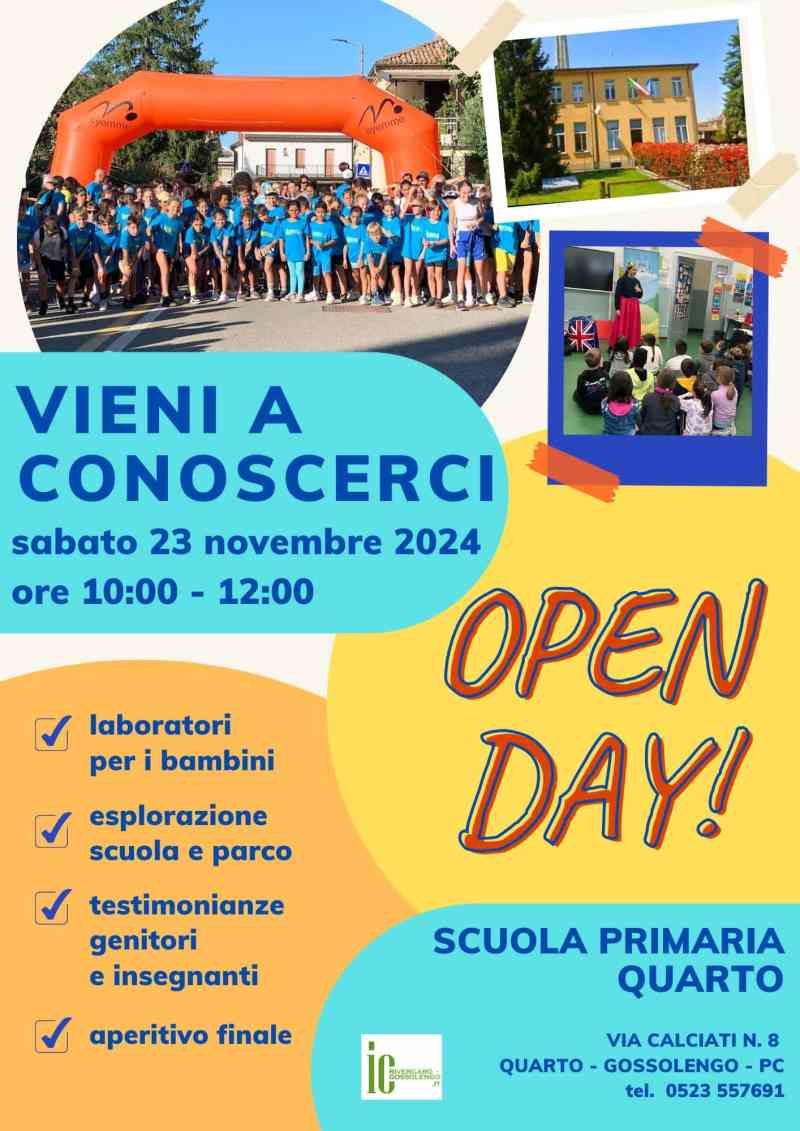 La scuola primaria di Quarto apre al pubblico per farsi conoscere dai futuri alunni e dalle loro famiglie. Appuntamento sabato 23 novembre dalle 10 alle 12 all’istituto di via Calciati 8, a Quarto (Gossolengo).