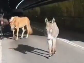Due cavalli e un asino a spasso lungo la Statale 45, intervengono i tecnici Anas – VIDEO