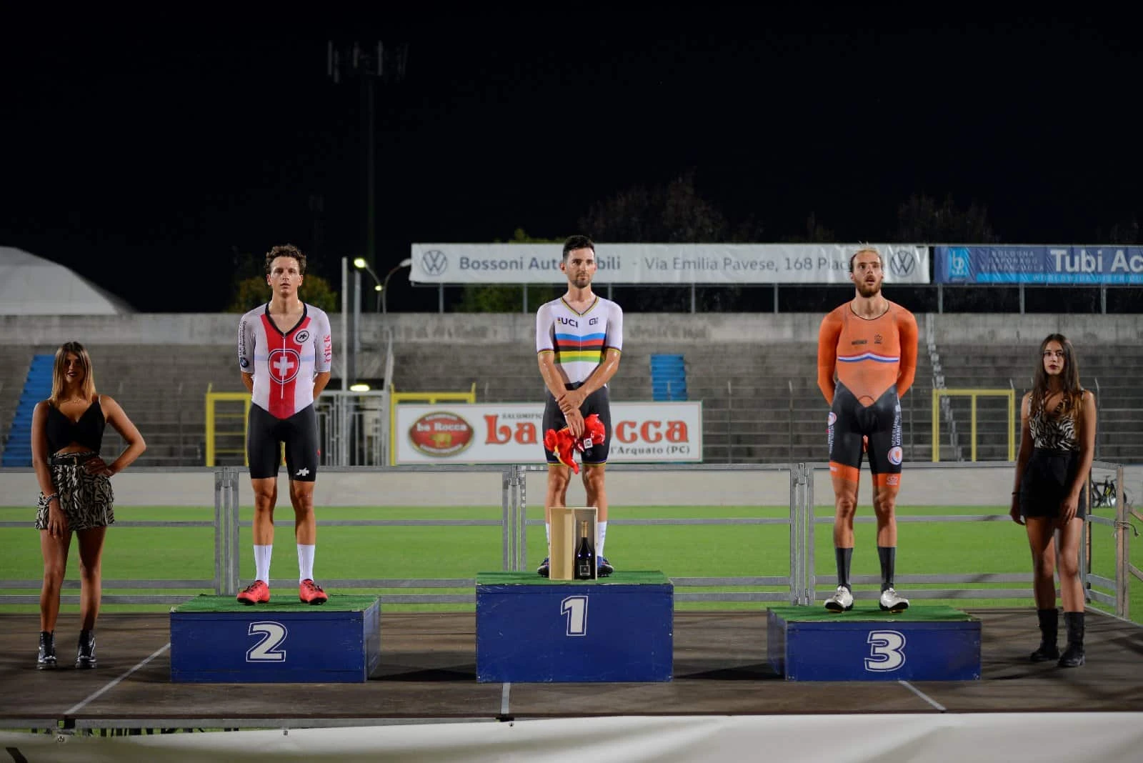 C’è ancora la firma del francese Benjamin Thomas sulle gare di classe 1 che si stanno svolgendo al Velodromo Attilio Pavesi di Fiorenzuola, nel corso della 23^ edizione della 6 Giorni delle Rose Internazionale. Il venticinquenne transalpino, vincitore in carriera di tre mondiali e quattro europei, dopo corsa a punti e scratch ha fatto suo anche l’omnium (con 140 punti), in maglia di campione del mondo, precedendo lo svizzero Thery Schir (125) e l’olandese Jan Willem Van Schip (119), argento ai mondiali.