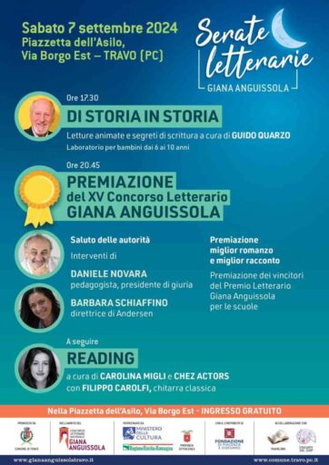 Serate letterarie di Travo 2024, gran finale dal 5 al 7 settembre. Tre giorni di appuntamenti che includono un incontro con l’autore, uno spettacolo e un laboratorio per bambini e la proclamazione dei vincitori del Premio nazionale Giana Anguissola di romanzi e racconti per ragazzi, in programma sabato 7 settembre.