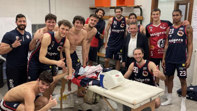 Fondamentale è anche il finale di partita di uno strepitoso Gherardo Sabatini, autore di tre triple pesantissime che di fatto hanno indirizzato la partita in favore dei biancorossoblu. Questo successo riporta la formazione biancorossoblu in quinta posizione nel Girone Blu, con l’Assigeco che scenderà in campo al PalaBanca contro Cividale domenica prossima nell’ultima partita di questa seconda fase prima dei playoff.