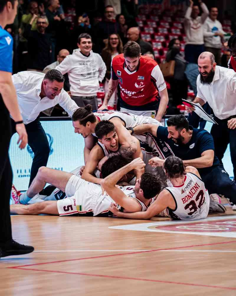 A metà esatta del girone d’andata l’Assigeco Piacenza di coach Salieri batte al PalaBanca Orzinuovi grazie ad un pazzesco canestro sulla sirena da parte di Bonacini: il finale è 57-54.