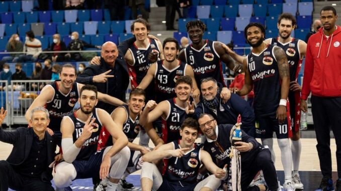 Tiri liberi: 10 / 14 – Rimbalzi: 30 5 + 25 (Giorgio Piunti 10) – Assist: 22 (Matteo Montano 7)