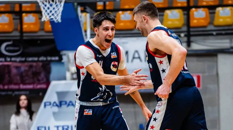 Il match di andata si è concluso con il punteggio di 85-84 in favore di Piacenza, al termine di una gara estremamente combattuta decisa a pochi istanti dalla sirena da un canestro in penetrazione di uno strepitoso Lorenzo Calbini.